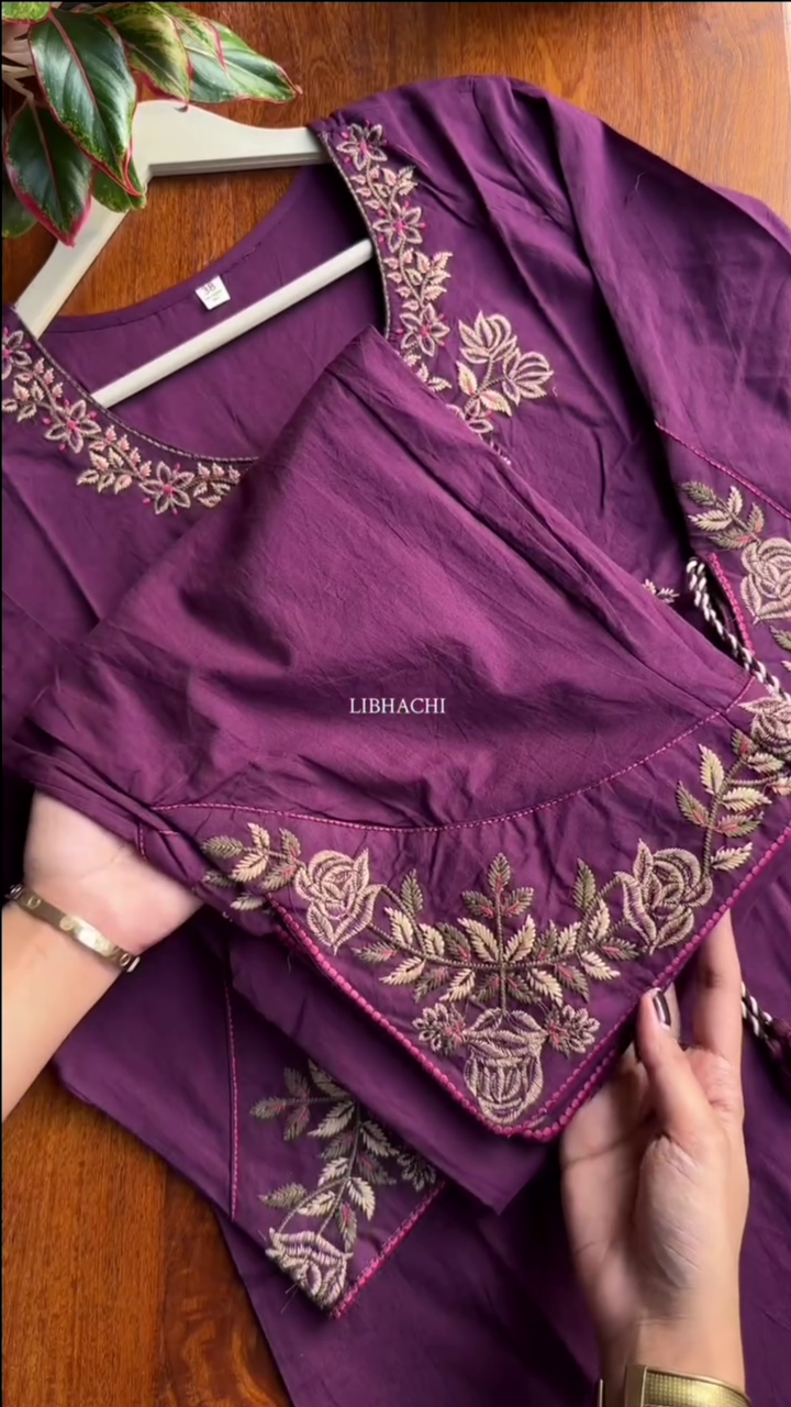 Be the first to review “Burgundy Embellished Cotton Blend Straight Suit Set With Dupatta”